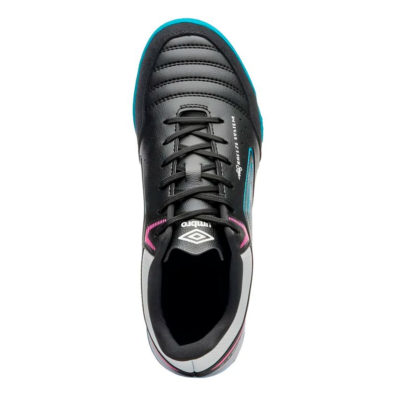 El botín de futsal Umbro X-Comfort presenta un diseño clásico con gráficos personalizados y tecnología de ventilación BREEZE SYSTEM, que favorece la respirabilidad durante el juego. Su entresuela de EVA de punta a punta proporciona amortiguación y soporte en cada paso, mientras que la suela de goma con función antideslizante garantiza estabilidad, tracción y durabilidad en la cancha. Además, este modelo cuenta con puntera cosida, lo que suma resistencia y precisión en cada jugada. Un calzado pensado para brindar confort y rendimiento a los verdaderos apasionados del futsal.